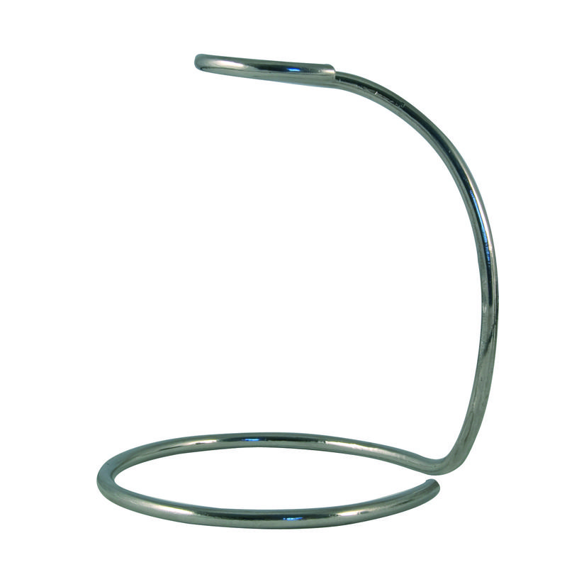 Robuuste roestvrijstalen scheerkwasthouder, zeer corrosiebestendig. De houder heeft de vorm van de elegante "muzieksleutel van fa", de bassleutel van de diepe stem van de man. Met kwast, scheerzeep en aluin is dit een van de essentiële elementen van het dagelijkse scheerritueel. Hygiënisch, het is net zo handig op de weg als thuis, want na gebruik blijft de kwast droog en verlengt de duurzaamheid.