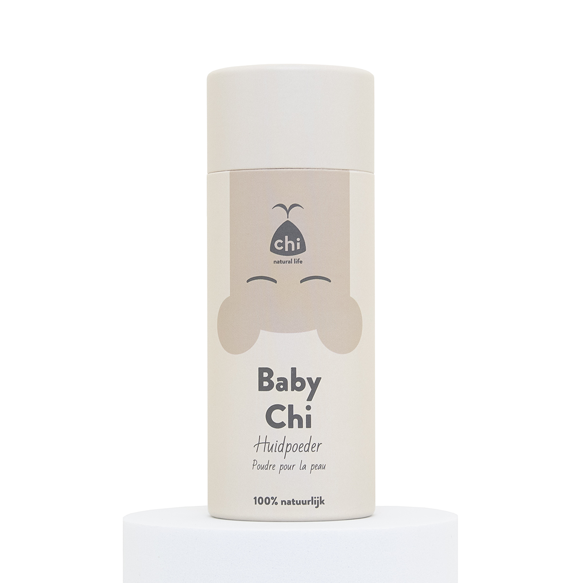 Baby Chi Huidpoeder bestaat voor 100% uit zuivere witte klei. Deze zongedroogde klei verzacht de gevoelige huid van baby"s en ondersteunt het herstellend vermogen. Het is perfect voor het behandelen van luieruitslag en een geprikkelde en rode huid. Deze baby huidpoeder zonder talk houdt de huid droog en zorgt voor een natuurlijke bescherming en comfort. Onze 100% natuurlijke huidpoeder is een veilig en effectief alternatief voor talkpoeder.