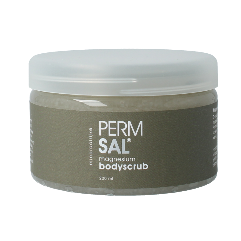 De scrub bestaat uit natuurlijke ingrediënten. De kracht van Permsal magnesium komt voort uit de meest zuivere bron ter wereld, in Nederland. Herstelt op natuurlijke wijze het essentiële magnesiumgehalte op celniveau door effectieve opname via de huid.